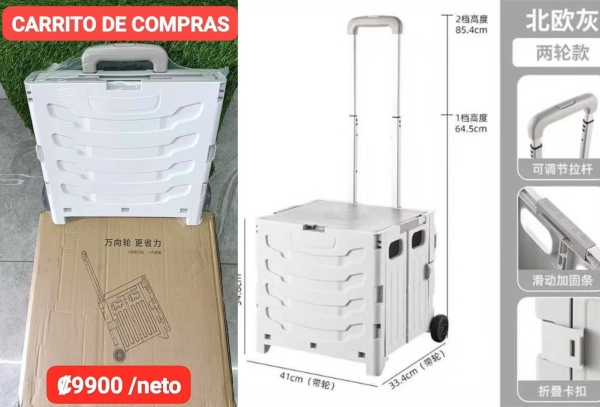 货名(Nombre):NETO/手拉购物车 长33.4*宽41*高34.8CM 伸拉杆1档64.5cm 2档85.4cm(NETO/CARRITO DE COMPRAS)